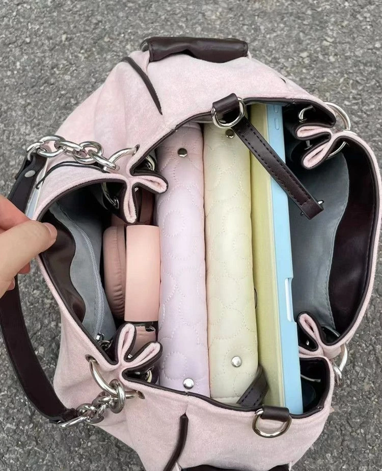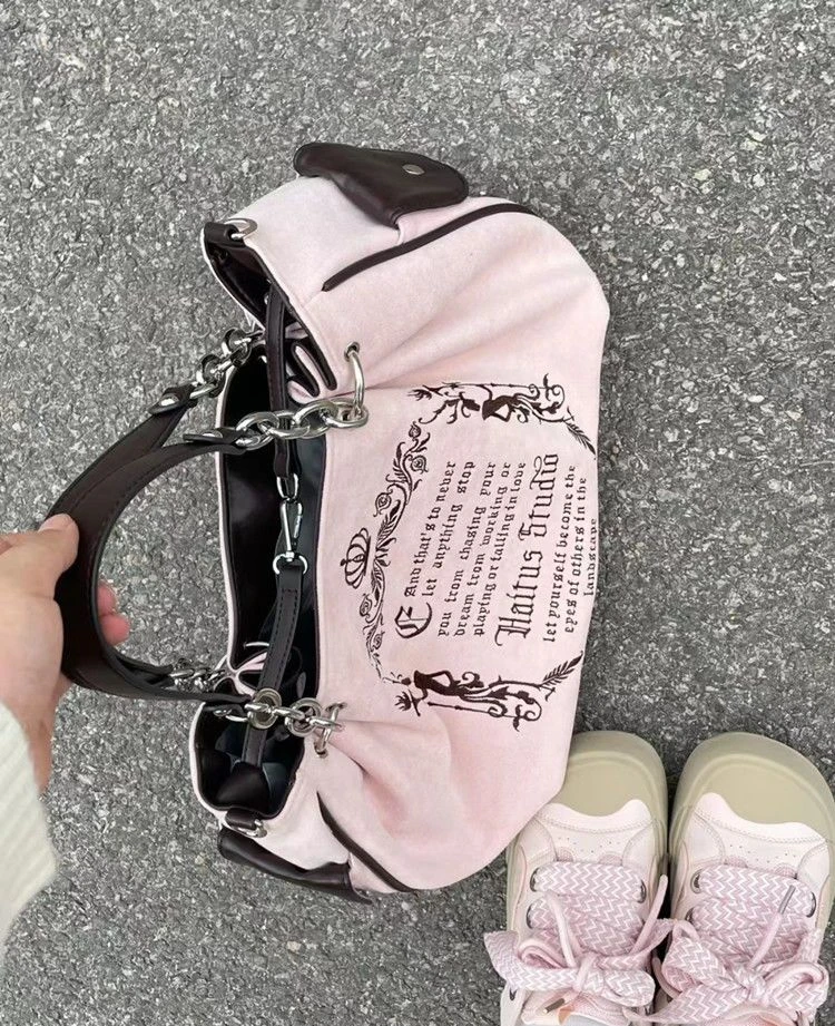 qgtao Y2K Pink Vintage Gothic Women Tote Bag Aesthetic Large Capacity Embroidery Letters Retro Shopping Travel Chain Shoulder Bag