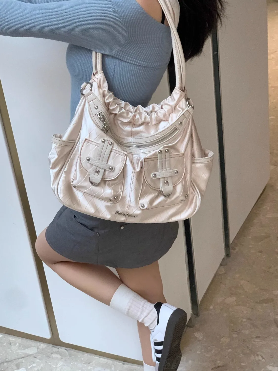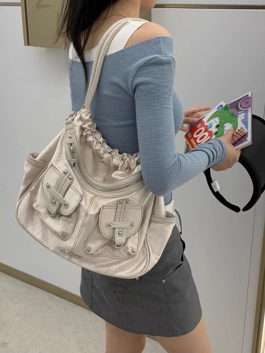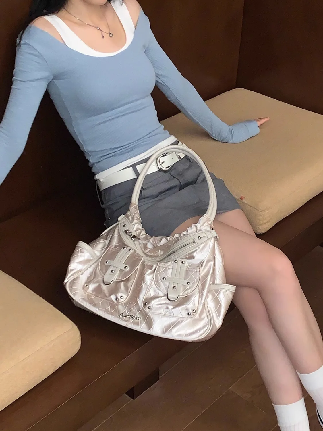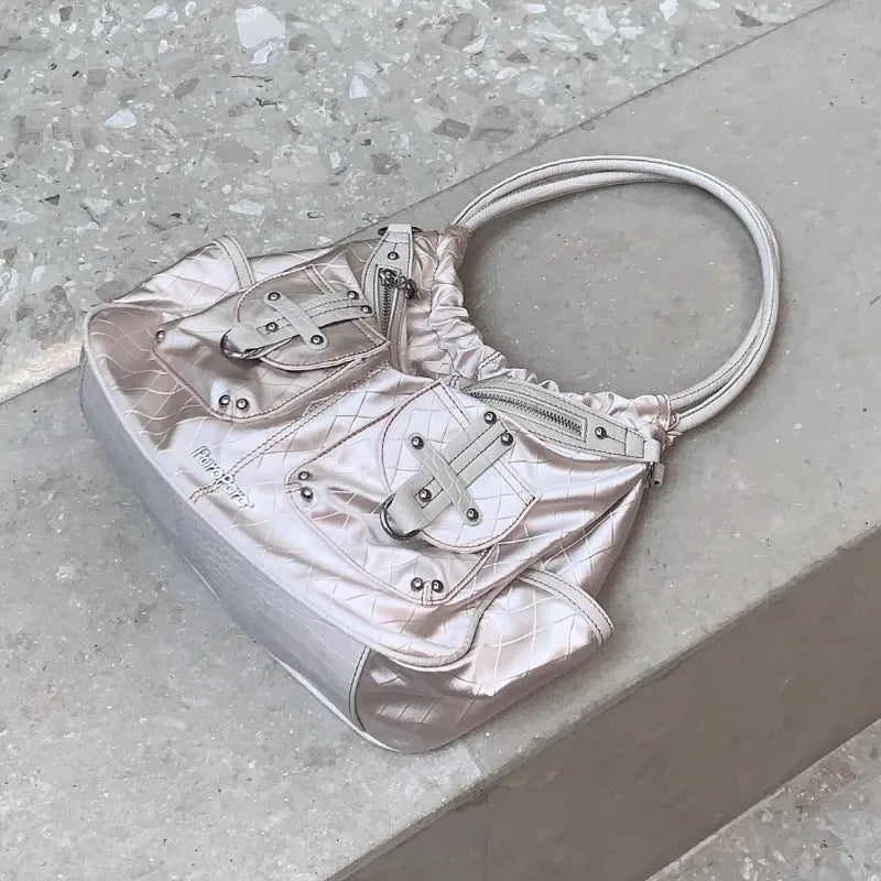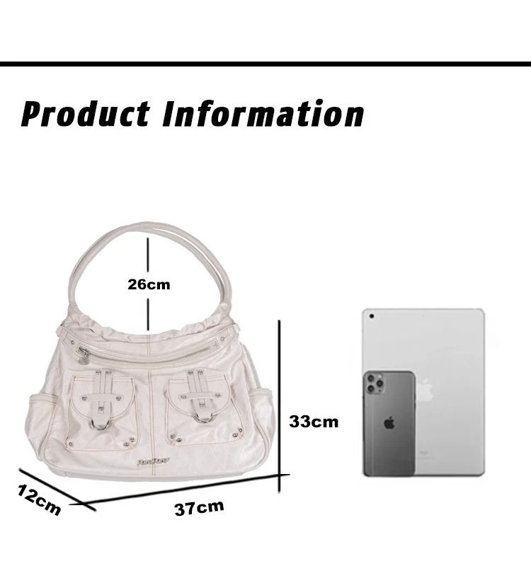 qgtao Y2k White Shoulder Bag for Women Pleated Soft Autumn 2023 New Trendy Tote Bag Multi-pocketed Large Capacity Handbag Sac