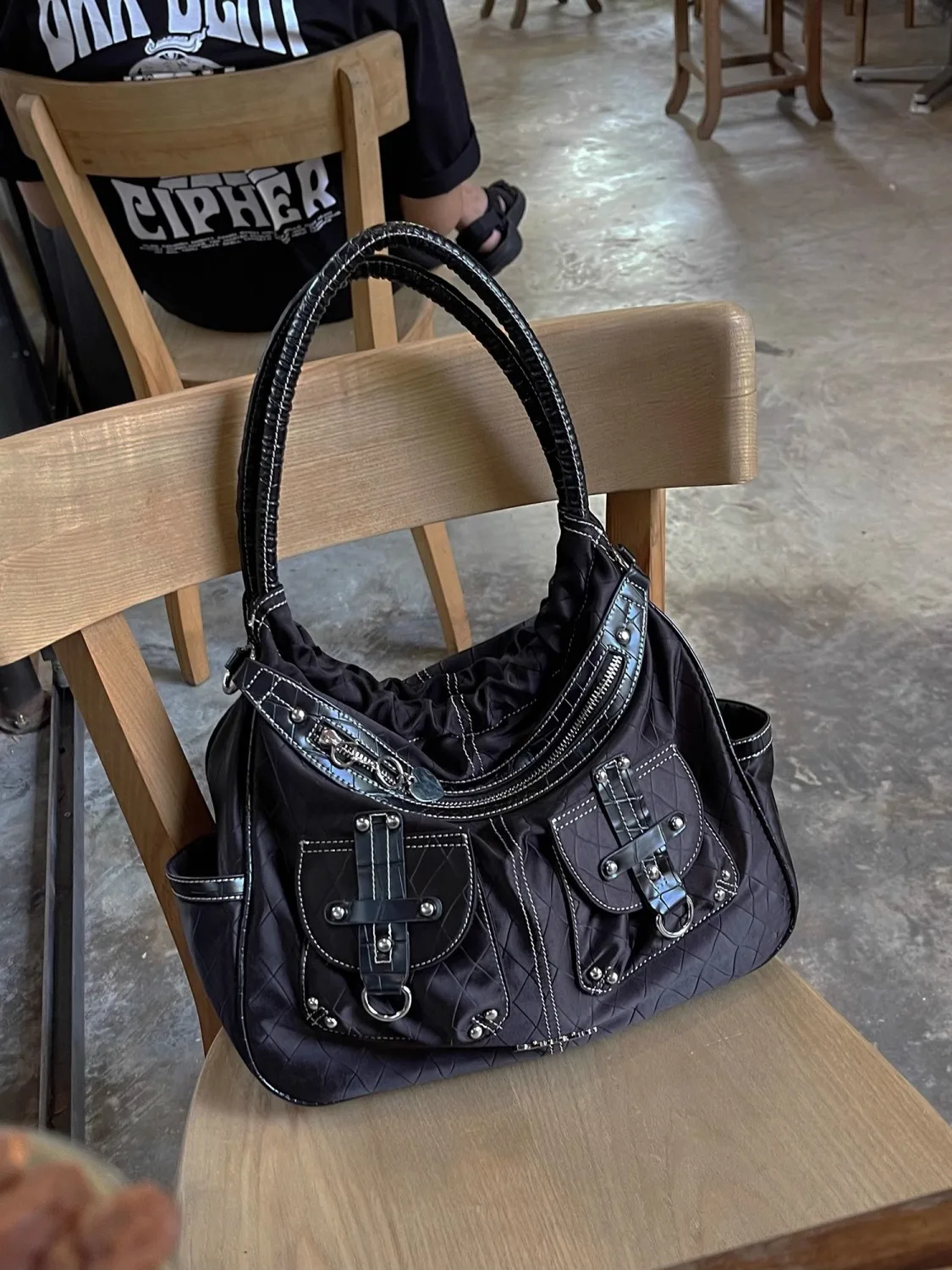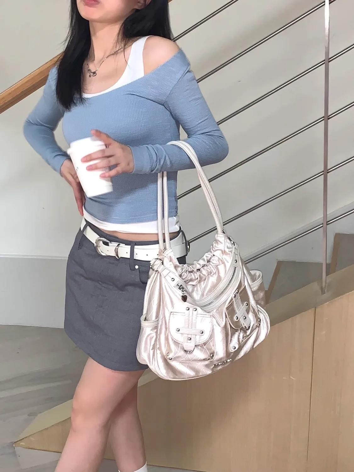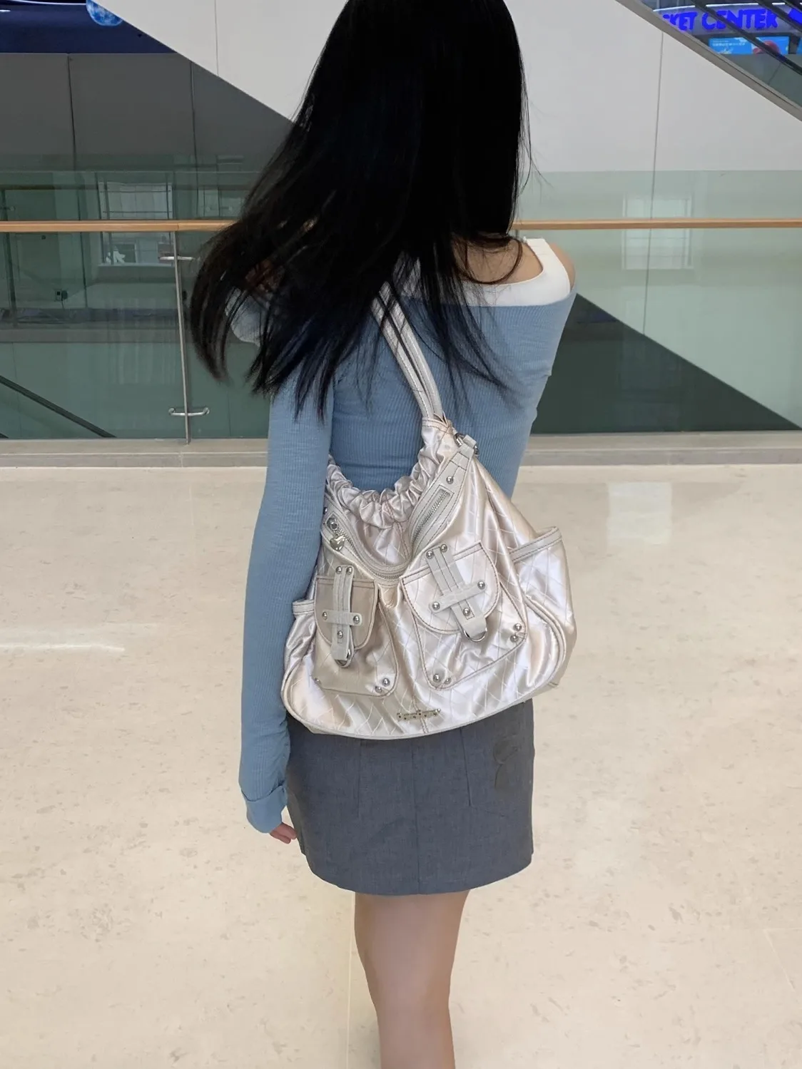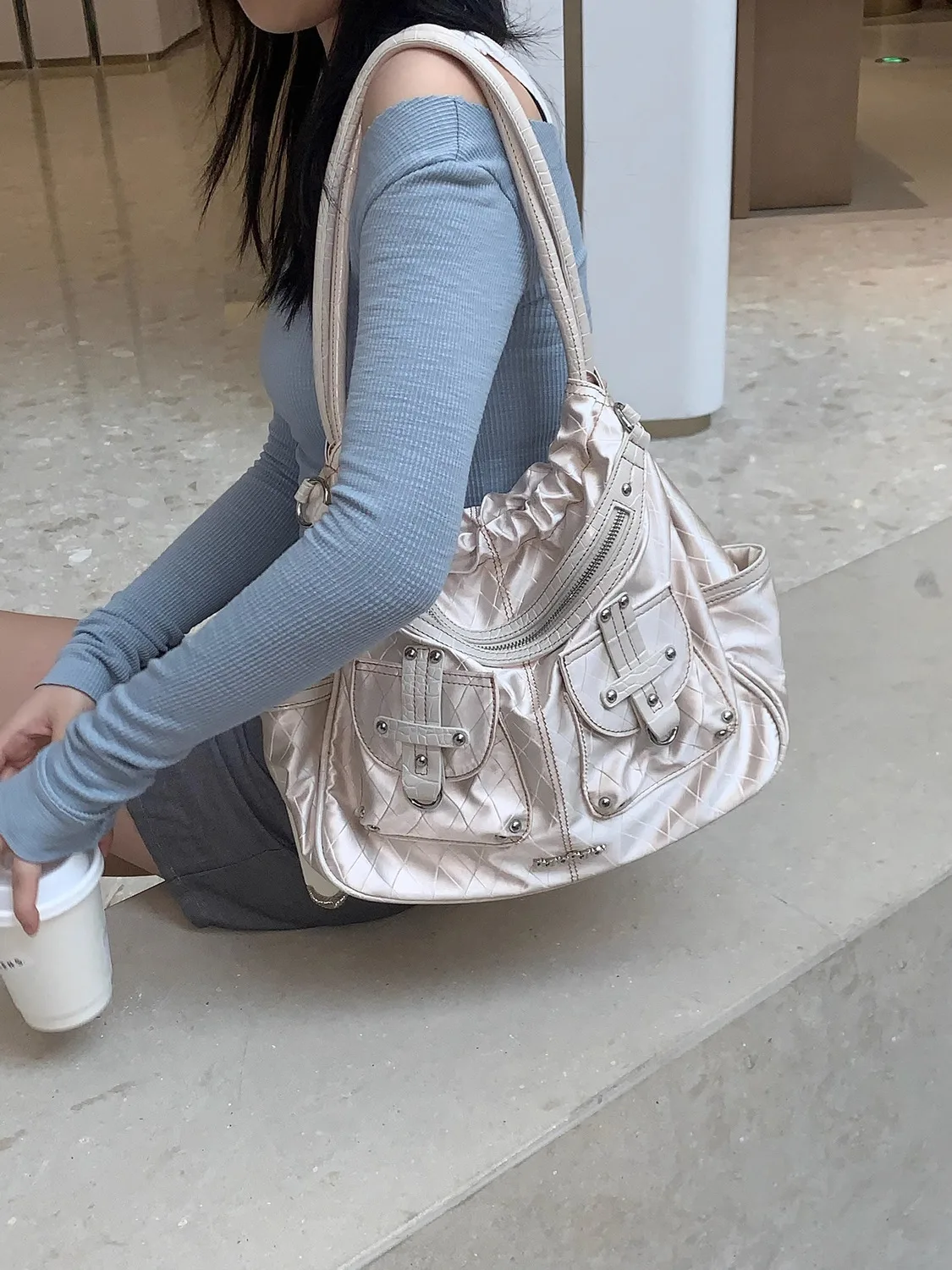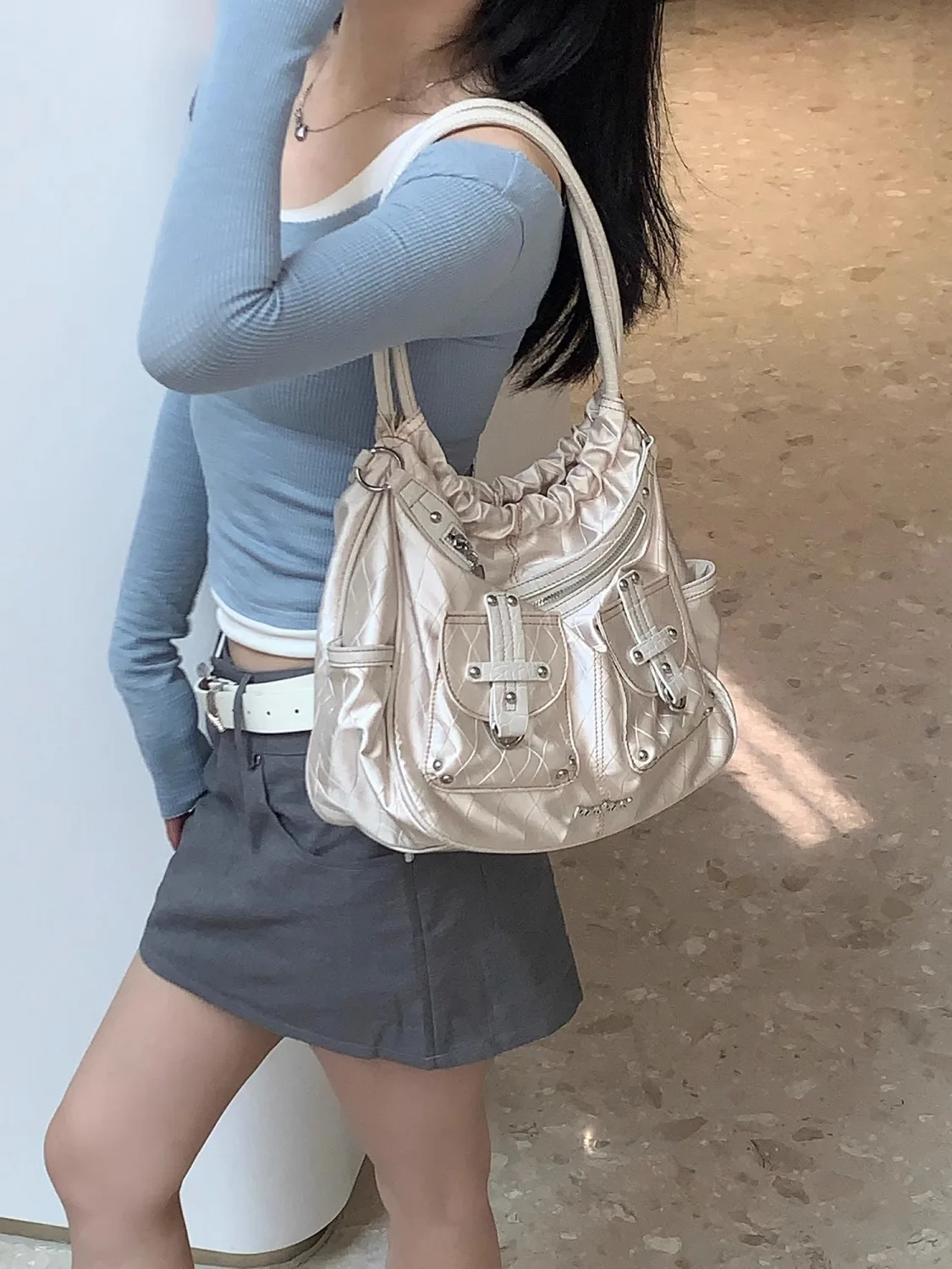 qgtao Y2k White Shoulder Bag for Women Pleated Soft Autumn 2023 New Trendy Tote Bag Multi-pocketed Large Capacity Handbag Sac