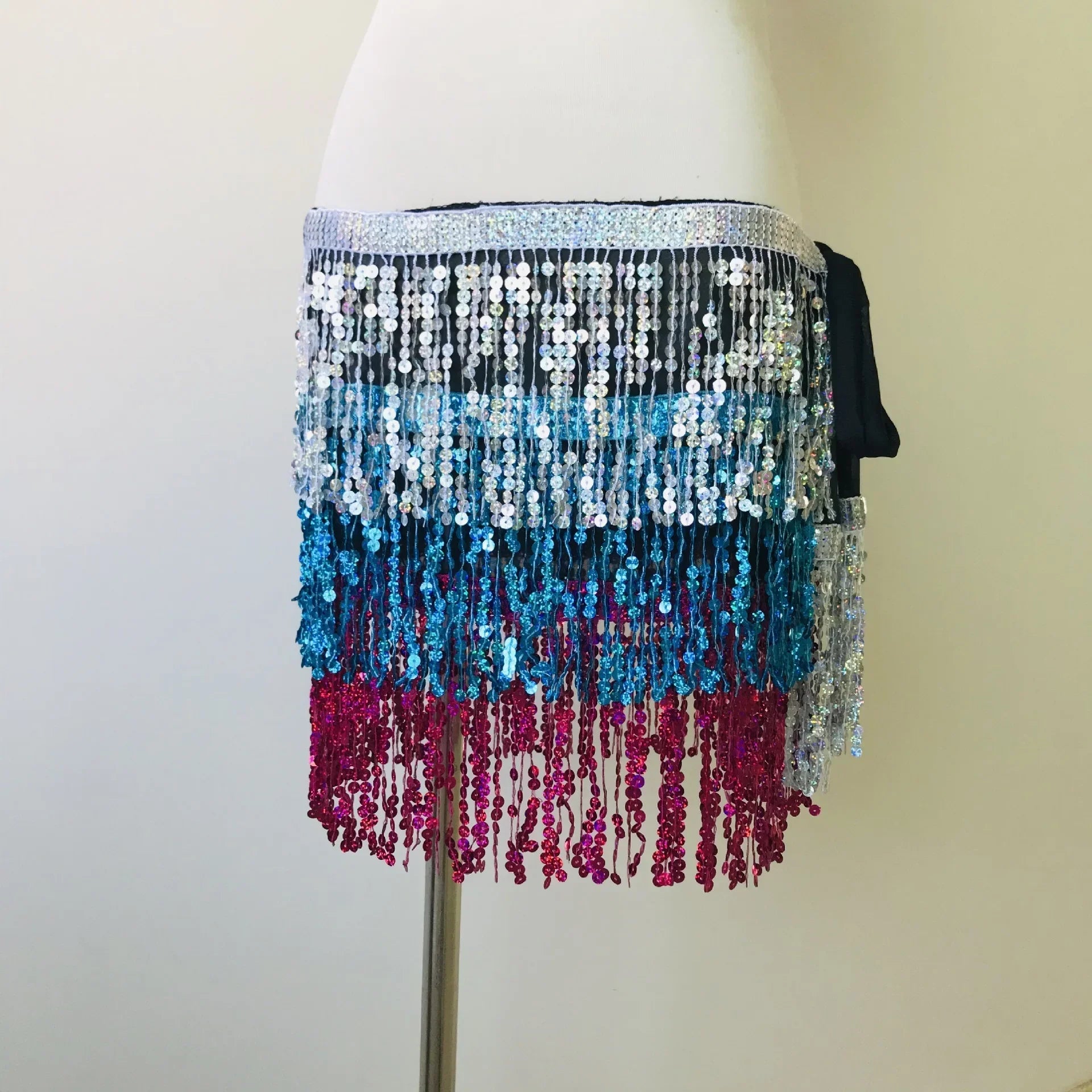 Sexy Sequins Tassel Dancewear Mini Skirt Women Clothes Jupe Femme Belly Dance Skirts Ladies Faldas Performance Stage Bottom Saia