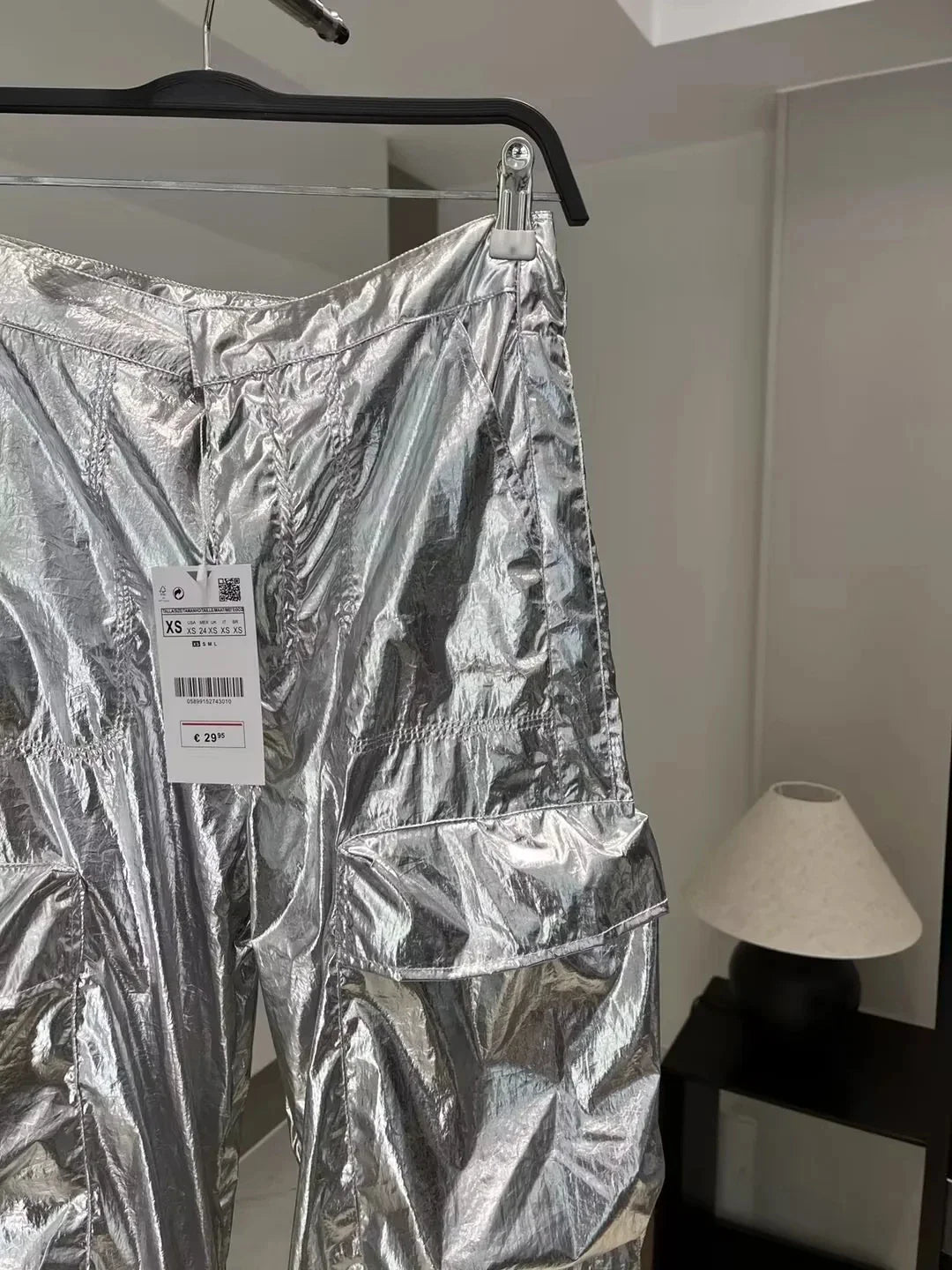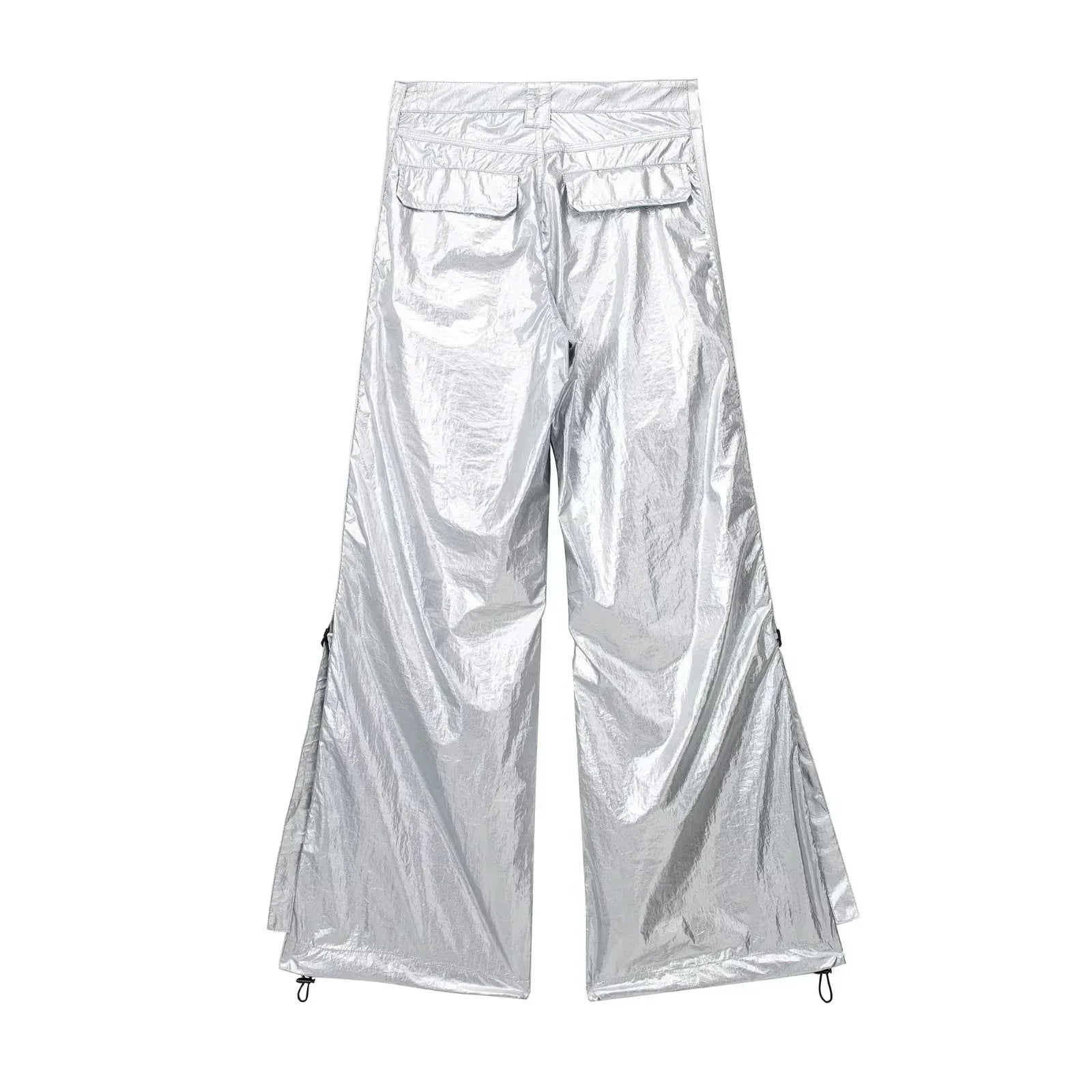 Silver Y2k Women's Pants Cargo 2024 Baggy Trousers Loose Oversize Vintage Streetwear Trendy Casual Stylish Chic Classic Mid Wasi