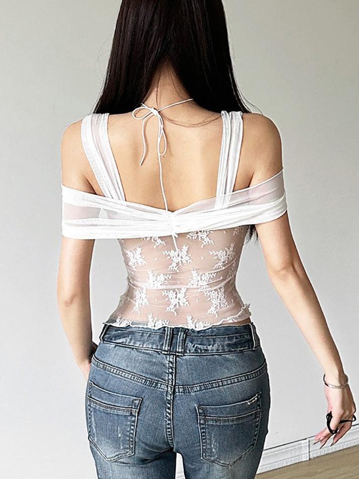 Solid Color Sheer Mesh Top