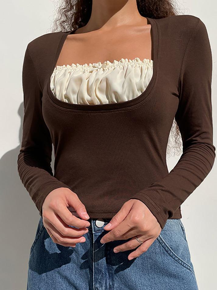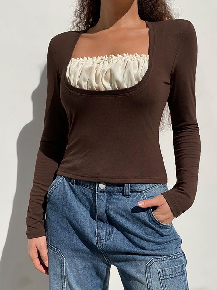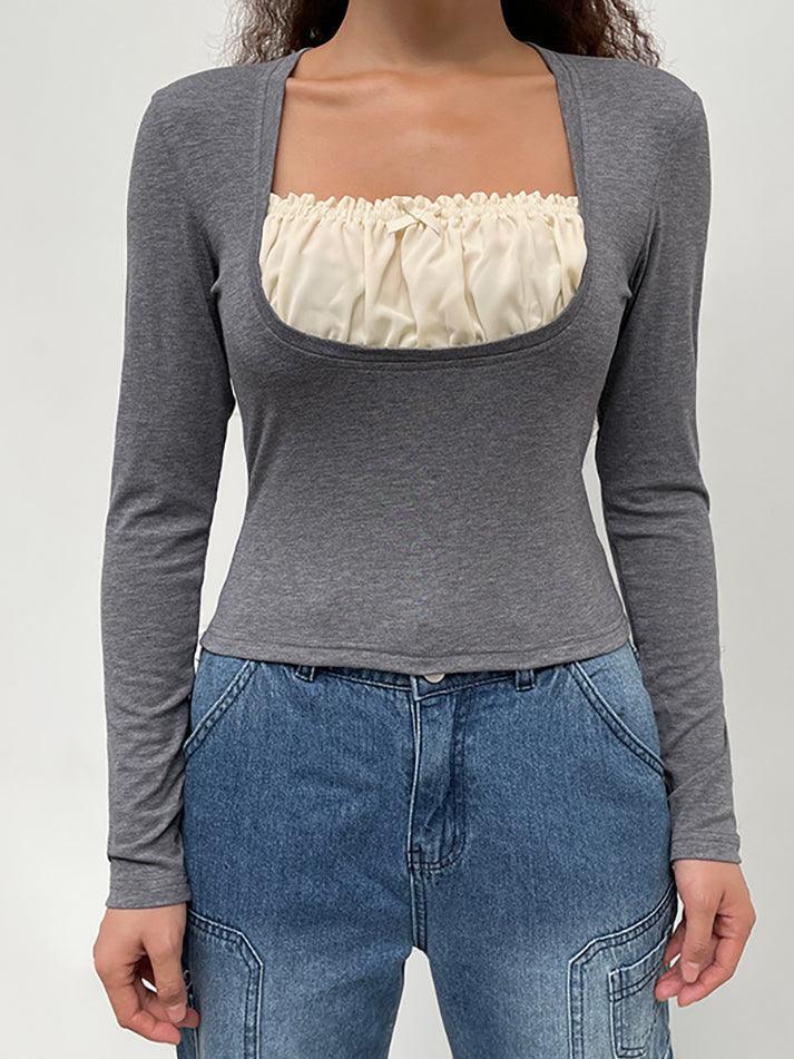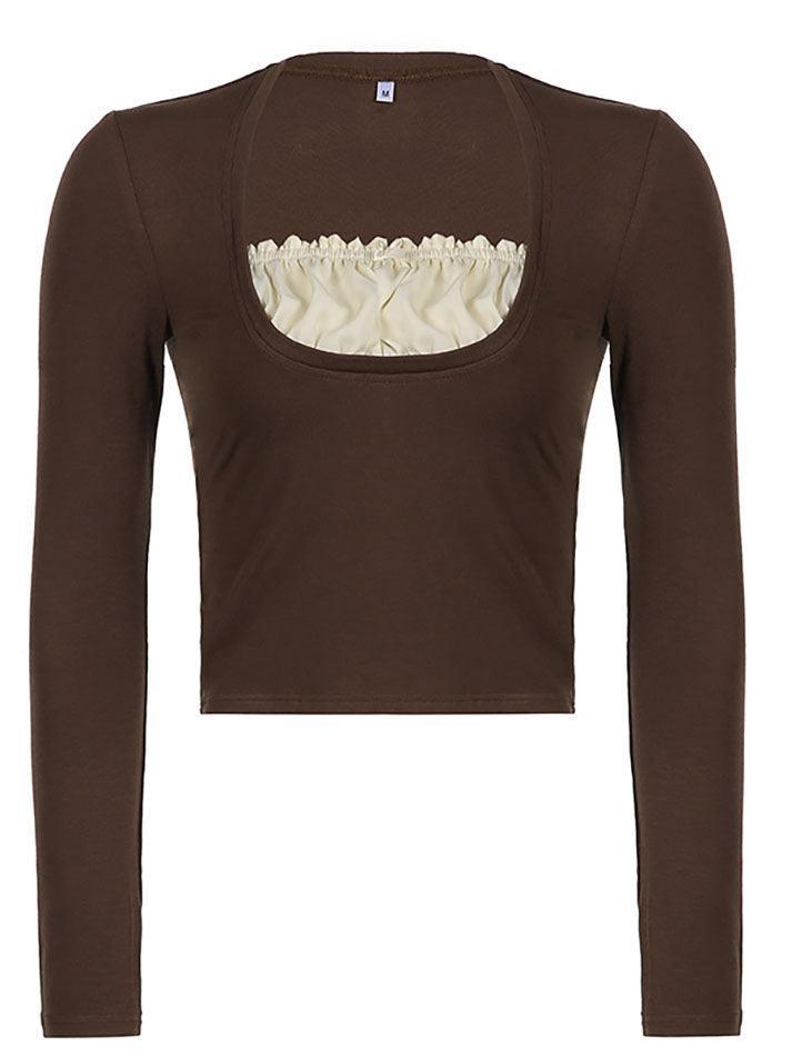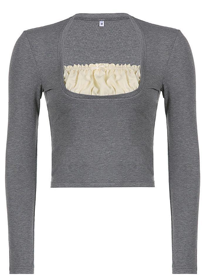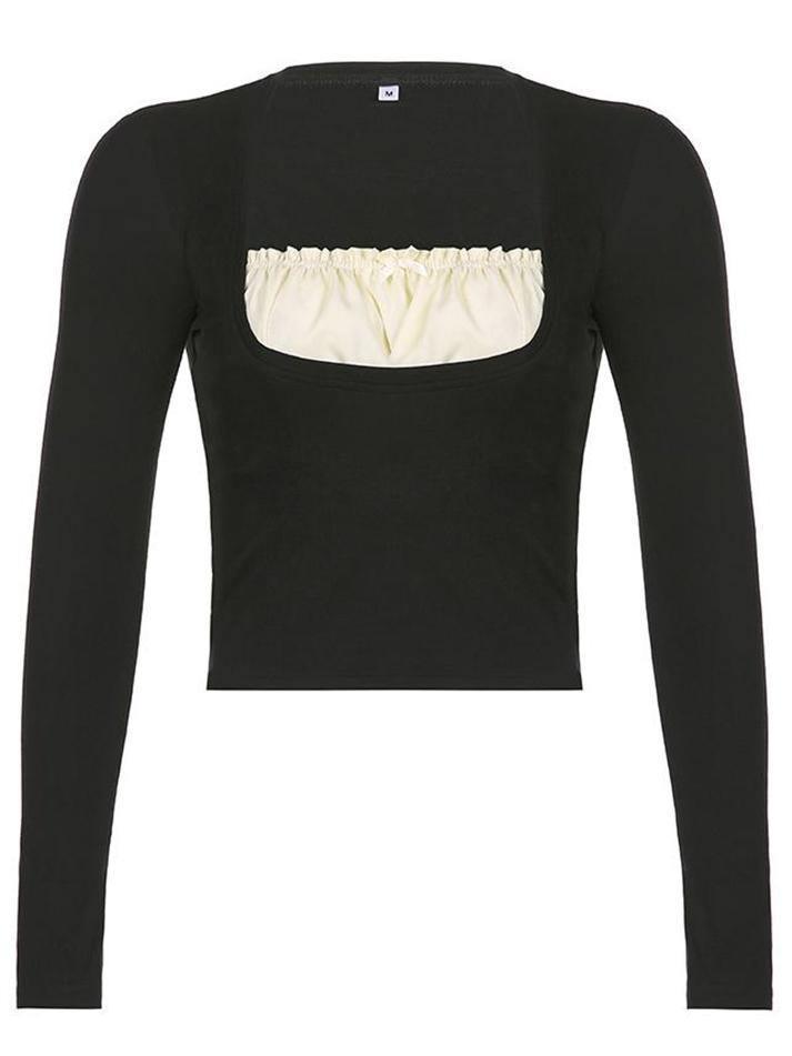 *Features: Long sleeve, bow neck, lace trim, vintage, y2k, aesthetic, Harajuku, casual style.