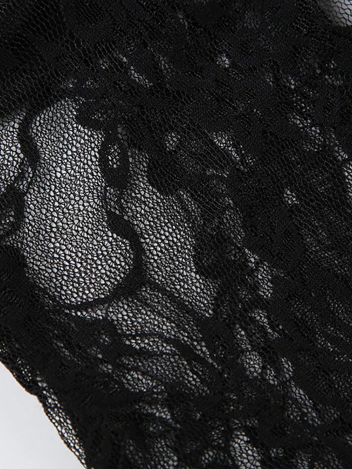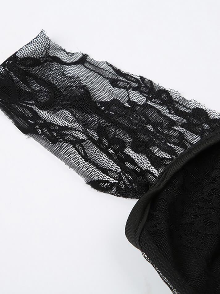 Square-Neck Plain Lace See-Through Crop Tank Top