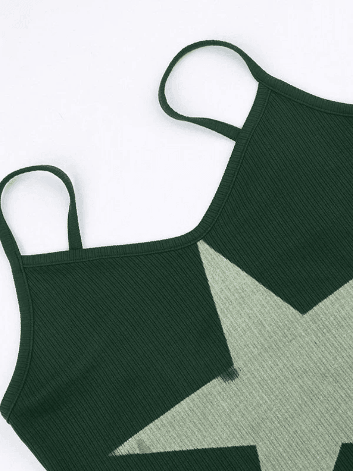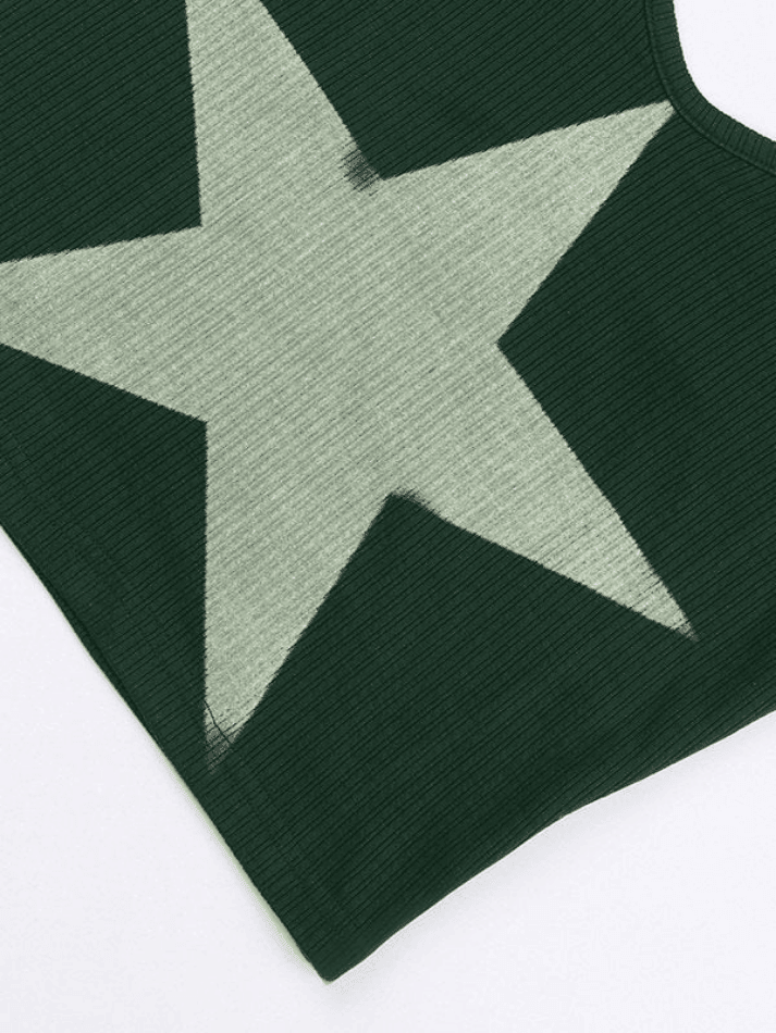 Description: Indulge in the starstruck charm of this trendy knit crop cami top. Made from soft knit fabric, it accentuates your silhouette with a cropped length and features a captivating star pattern on the front. With an alluring open back design, this top is an absolute must-have.