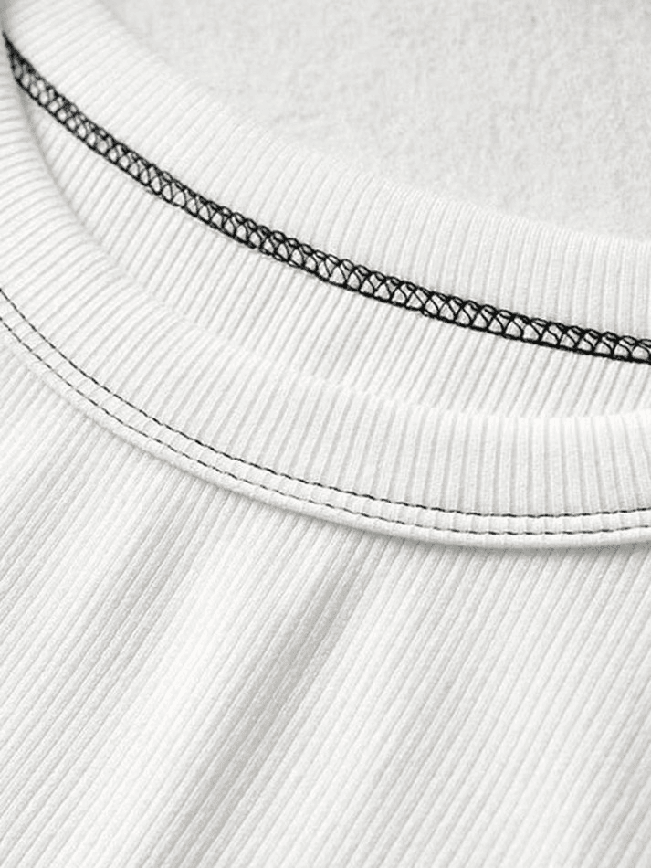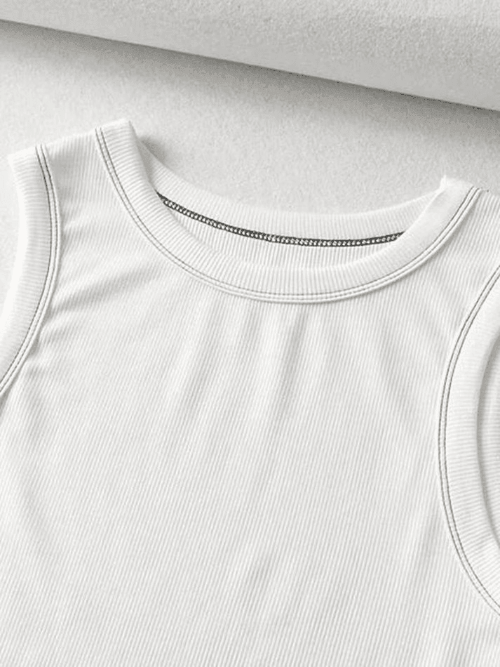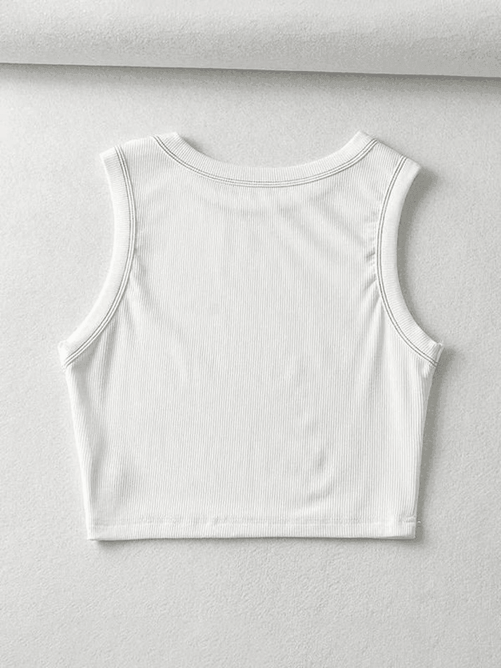 Description: Get ready to turn heads with our stylish ribbed crop tank top. Made from a comfortable cotton blend, this slim fit top is perfect for casual, sexy, street, or Y2K-inspired looks. Its crew neck and sleeveless design provide a trendy and chic appeal. Stand out from the crowd with the contrast stitched detailing and racer back design. Elevate your fashion game with this must-have wardrobe staple.