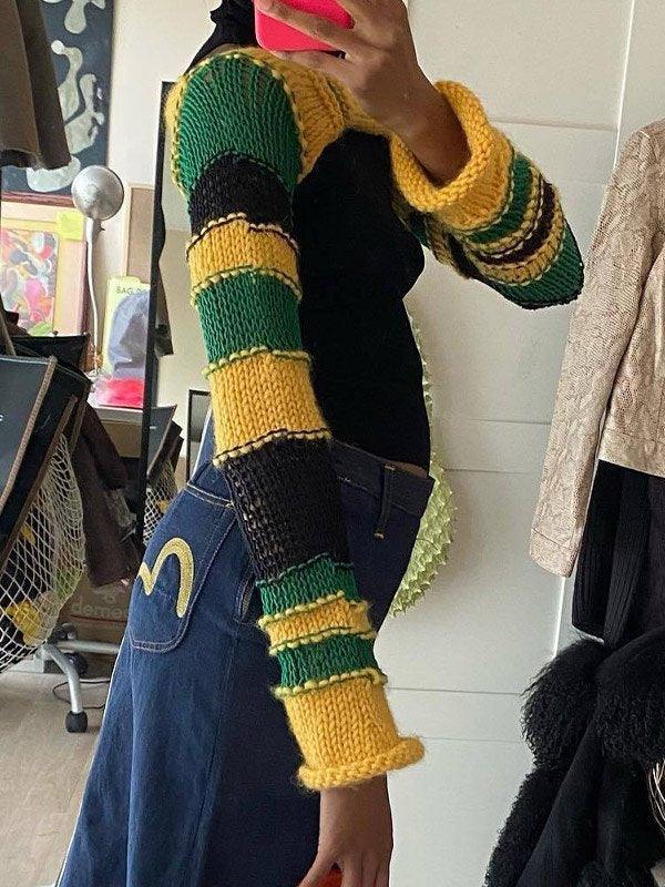 Description: Elevate your style with this adorable crochet striped crop top. Crafted from crochet knit fabric, this playful and sweet top features a contrast striped pattern. Its super crop length adds a trendy touch, making it versatile for various occasions. Embrace your fashion-forward side and create countless stylish looks with this must-have piece.