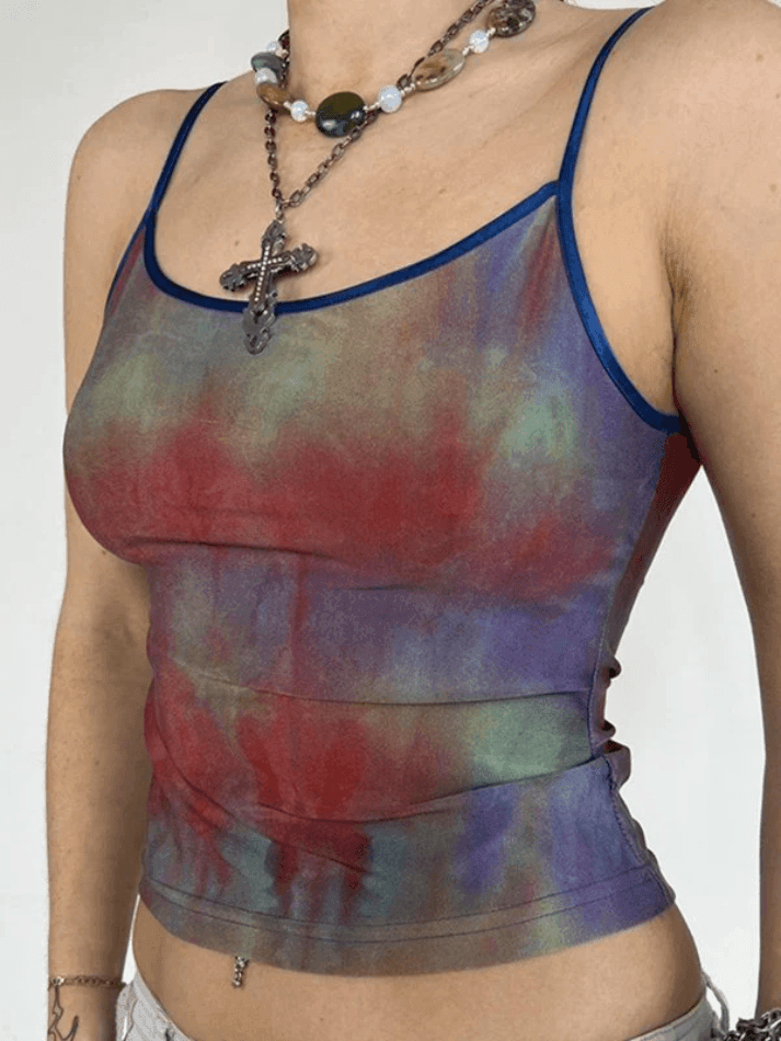 Trendy Y2K Style: Embrace the essence of Y2K fashion with this eye-catching tie-dye cropped tank top. Its vibrant colors and cropped length perfectly capture the spirit of the era, making it a must-have for your wardrobe.