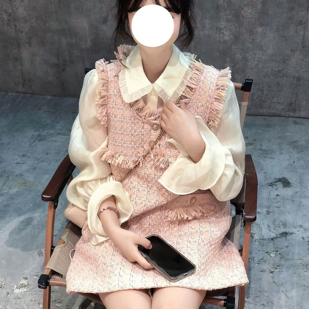 qgtao Fairy Sweet Two Piece Set Women Autumn Vintage Elegant Shirt Pink Cute Dress Set Casual Korean Style Formal Party Dress Set 2024