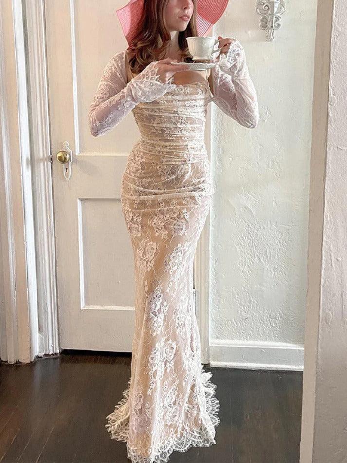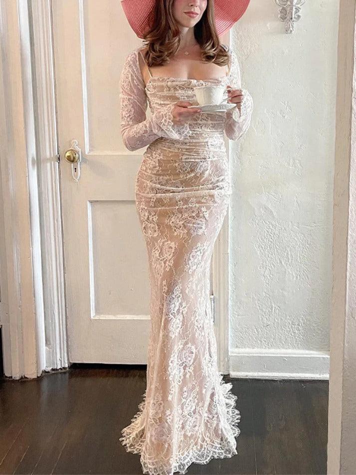qgtao Vintage Lace Ultra Smock Cami Mermaid Maxi Dress
