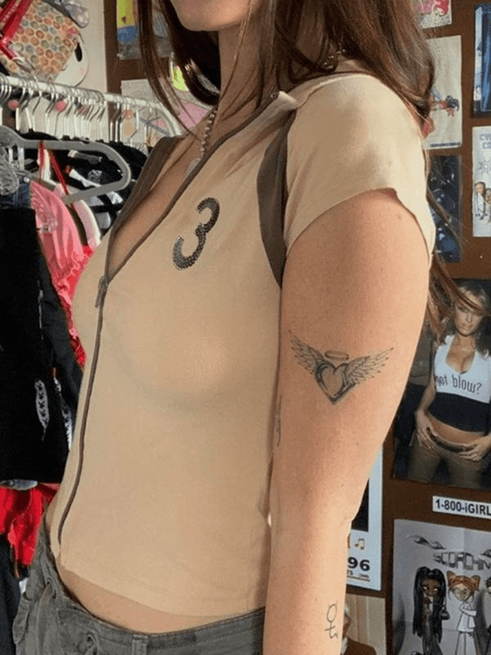 Description: Embrace retro vibes with this vintage-inspired crop top. Its slim fit and stand collar add a touch of elegance, while the eye-catching number pattern at the chest and contrast paneled design give it a unique and edgy look. Complete with short tank sleeves and a front zipper fastening, it's a must-have for fashion-forward individuals. Perfect for casual, street, Y2K, punk, hip pop, and vintage styles.