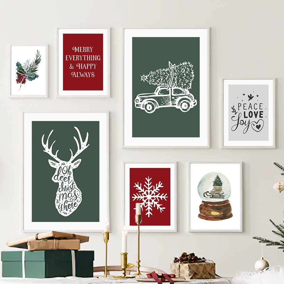 Wall Art Canvas Painting Christmas Tree Gift Santa Claus Deer Nordic Posters And Prints Wall Pictures For Living Room Home Decor