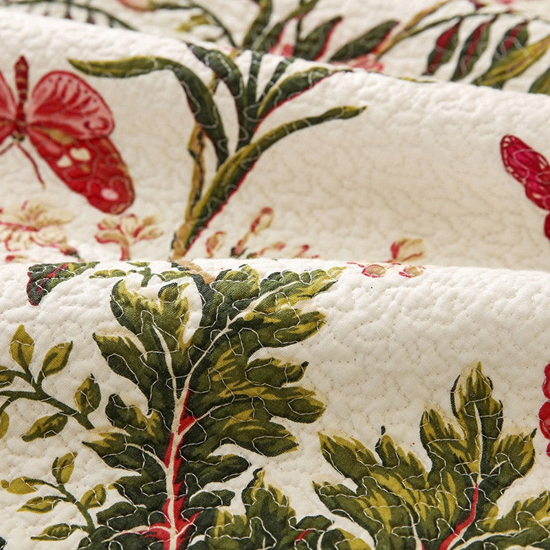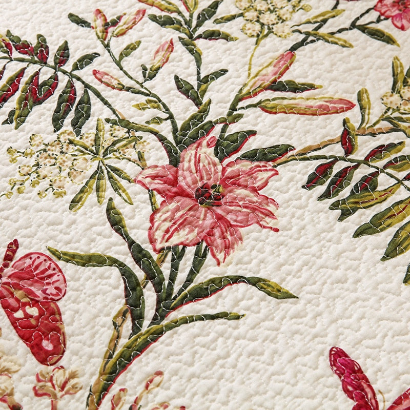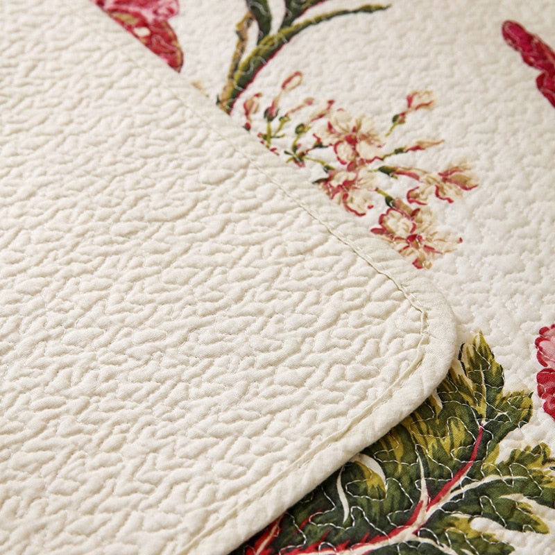 Yeknu 100% Cotton Birds And Flowers Quilt 3pcs Embroidered Quilted Quilt Pillowcase Free Shipping
