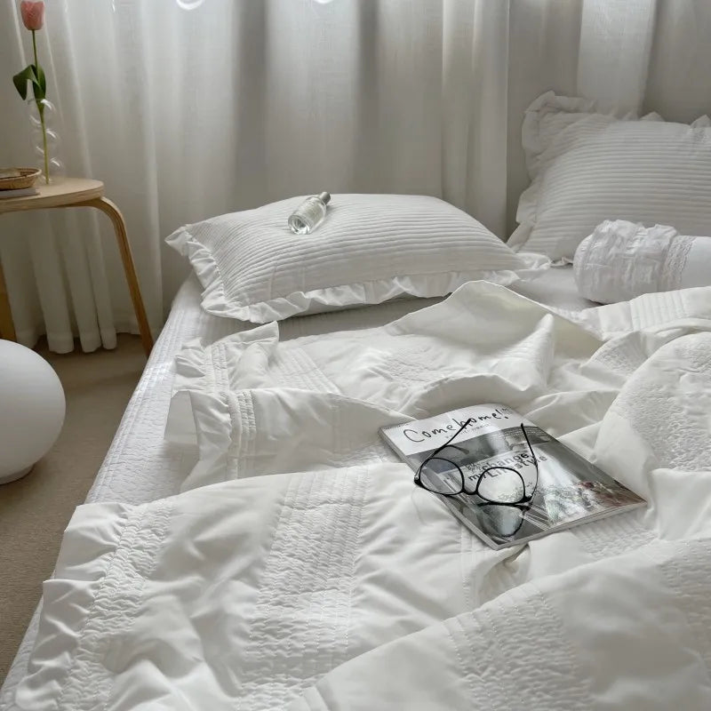 Yeknu 4 New Korean Chiffon Summer Quilt Three Piece Set Air-condition Quilt Kids Adult Quilts Polyester Washable Home Use
