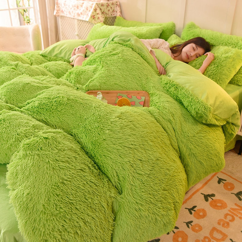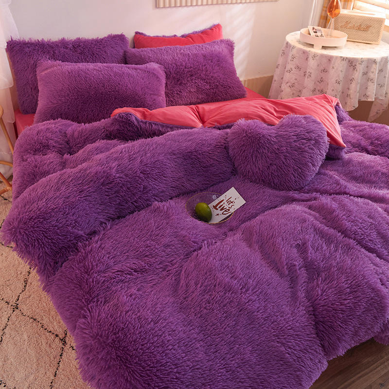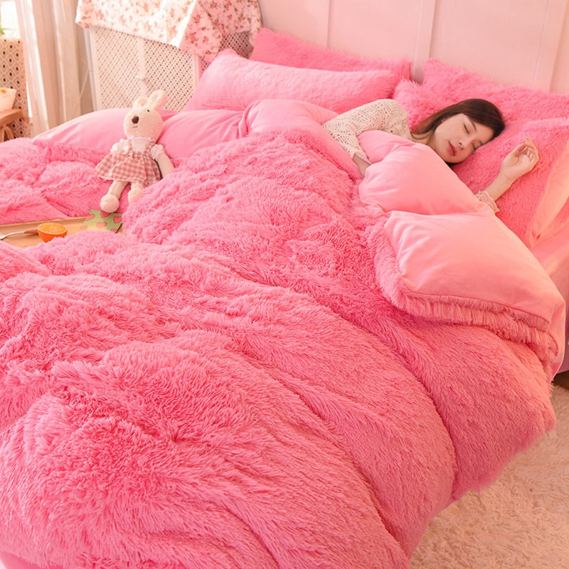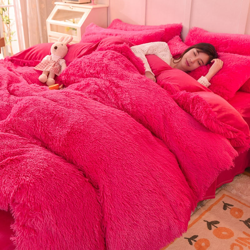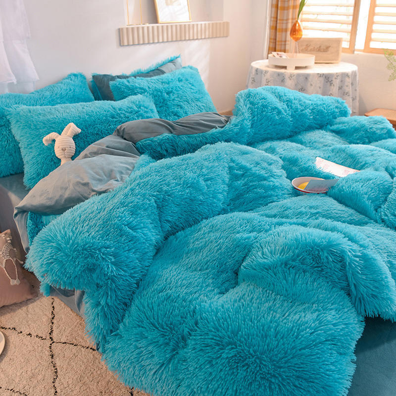 Yeknu 4pcs Autumn and Winter Warm and Thick Solid Color King Size Bedding Set Sheet Quilt Cover Pillowcase 220x240cm