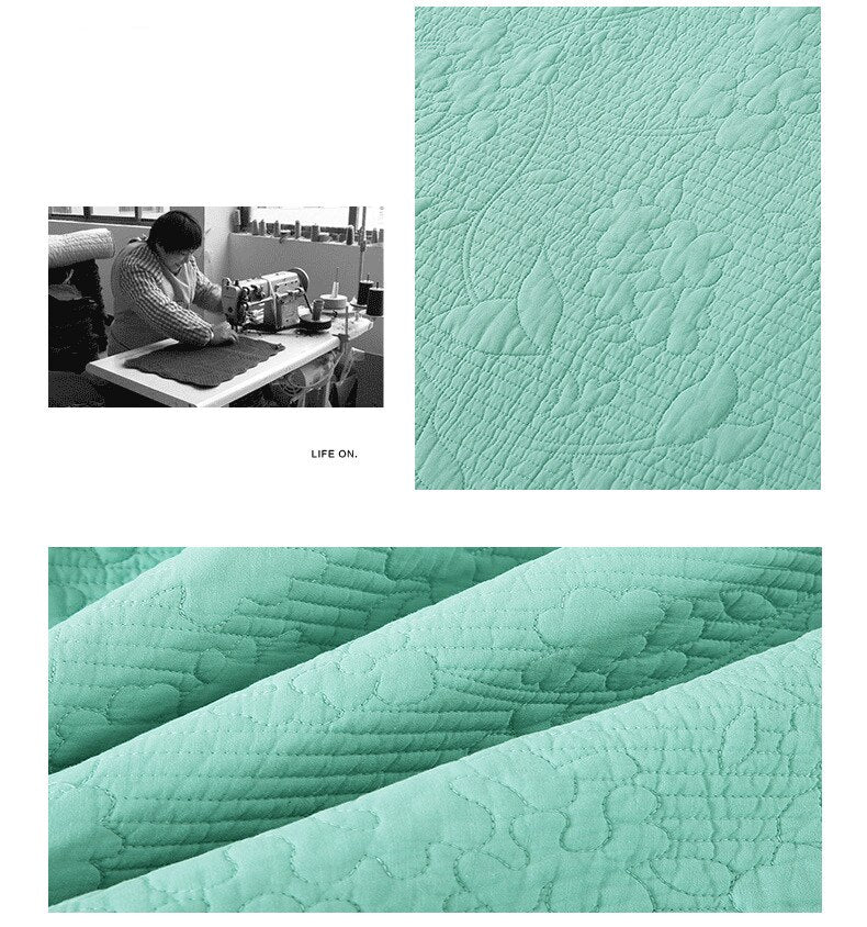 Yeknu Double Bed 100% Cotton Pure Green 3pcs Printed Quilted Quilt Pillowcase Free Shipping