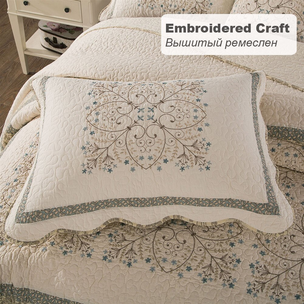 Yeknu Embroidered Cotton Quilt Set 3PCS Bedspread on Bed Coverlet Super King Size Summer Comforter Blanket for Bed 1P/5PC Set