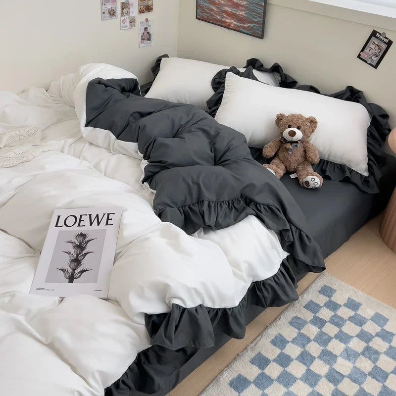 Yeknu Ins Princess Bedding Set 4 New Duvet Cover Fresh Blue Solid Color Floral Wrinkled Yann Bed Set Of Four Pieces Bed Sheets