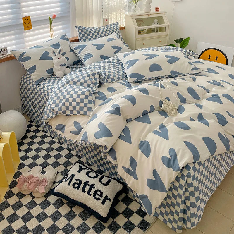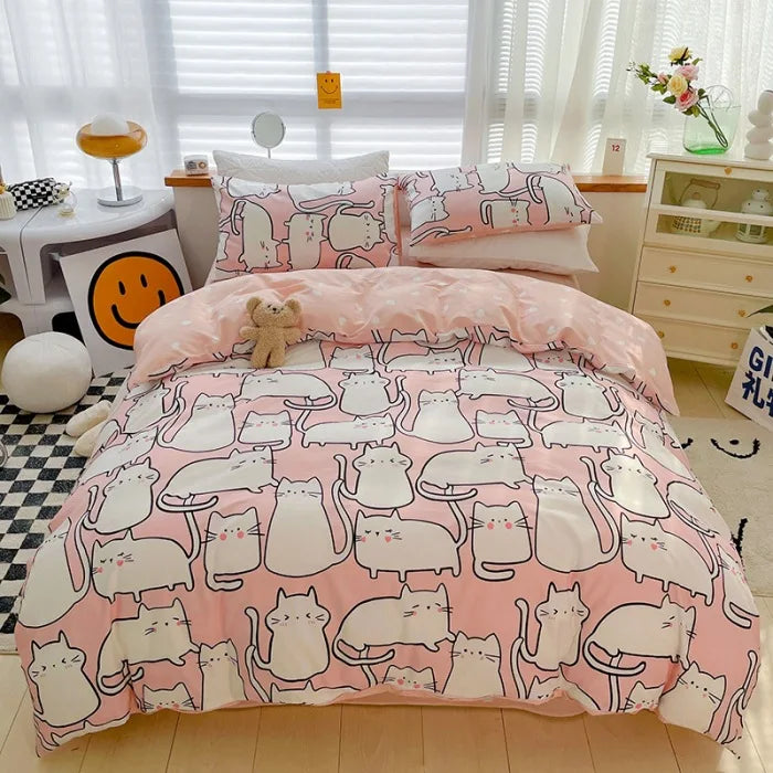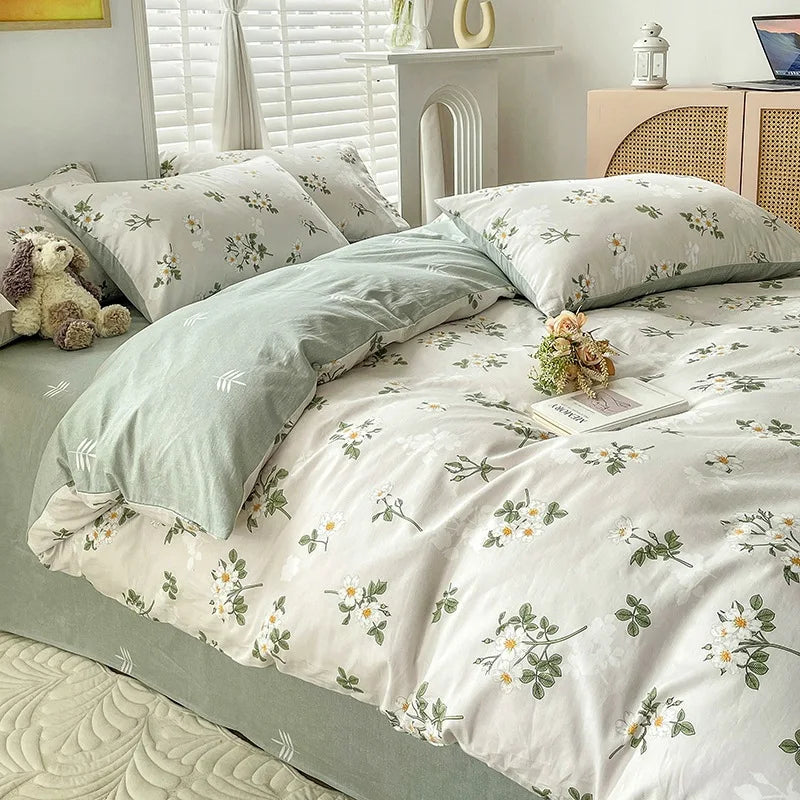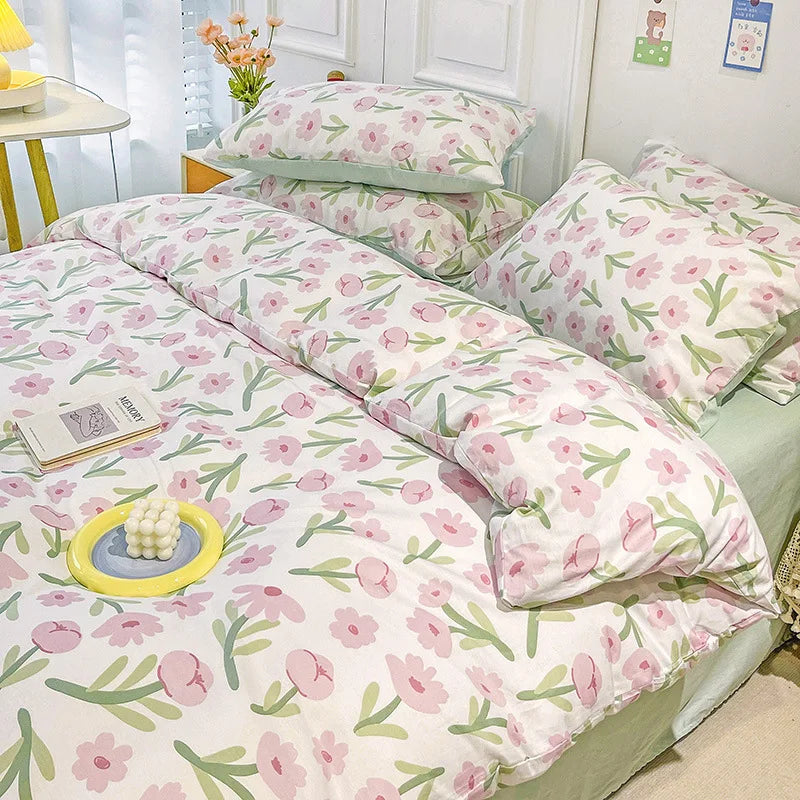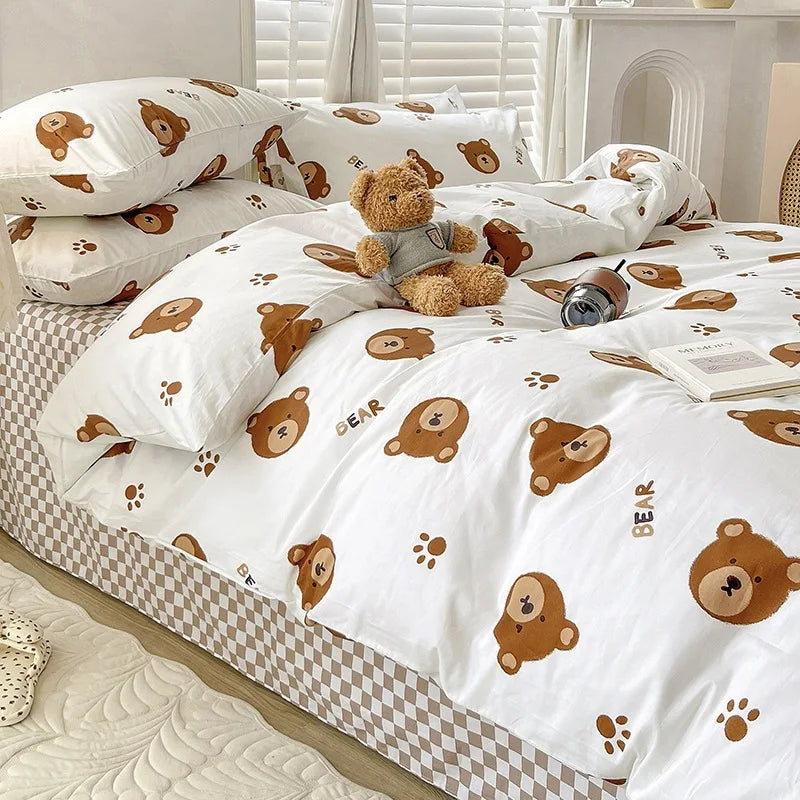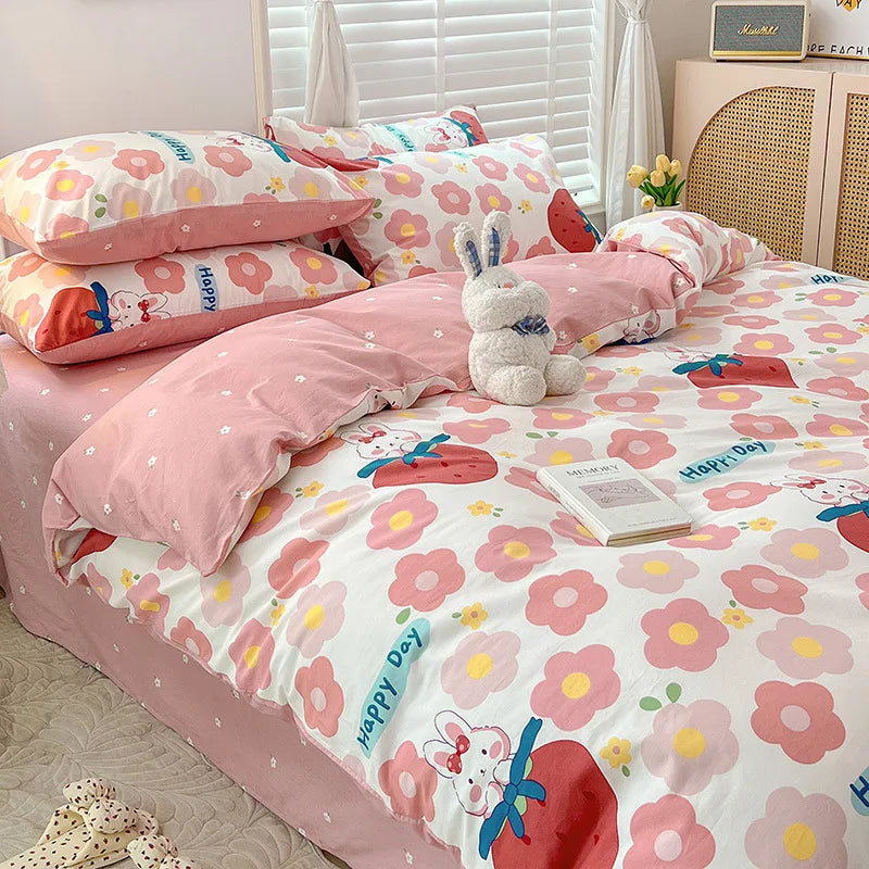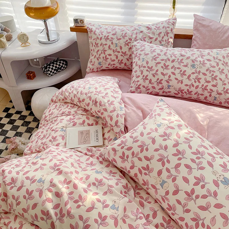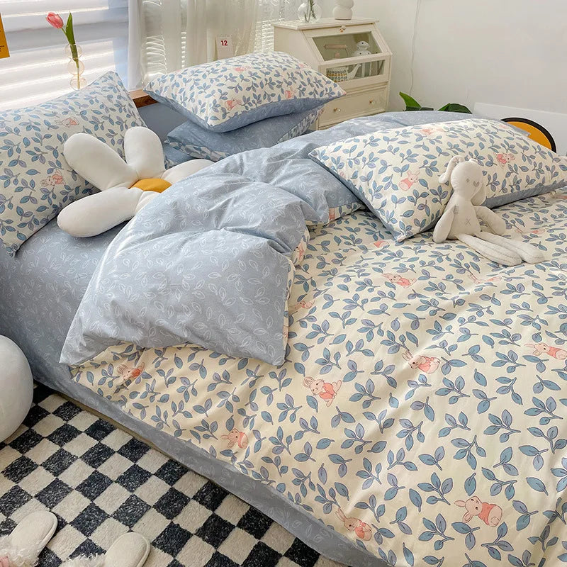 Yeknu Ins Style Bedding Set Cotton Soft Flat Fitted Sheet Duvet Cover Pillowcase Floral Rabbit Boy Girls Home Textile Bedclothes