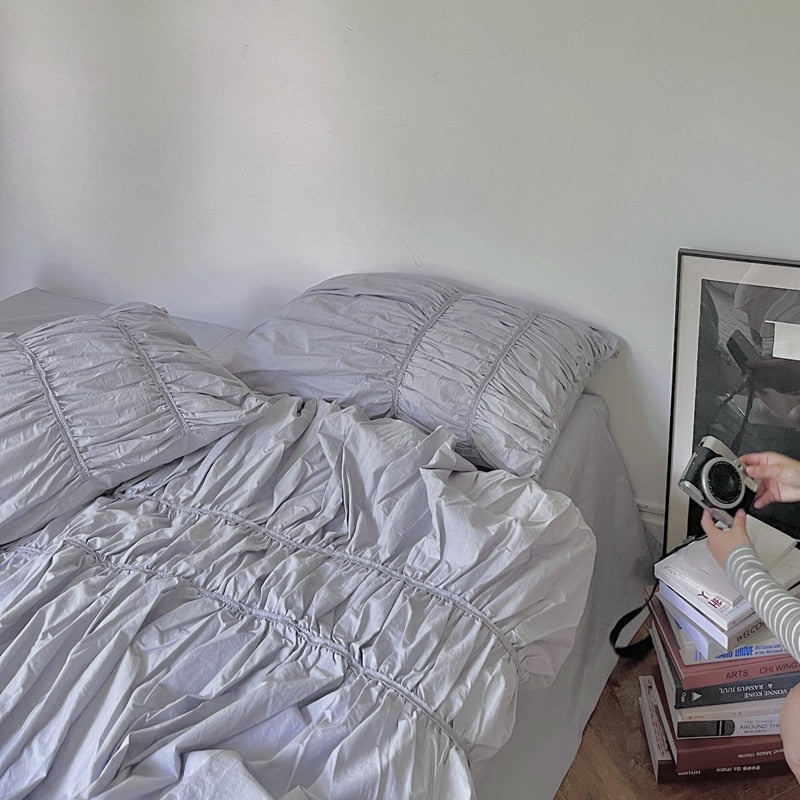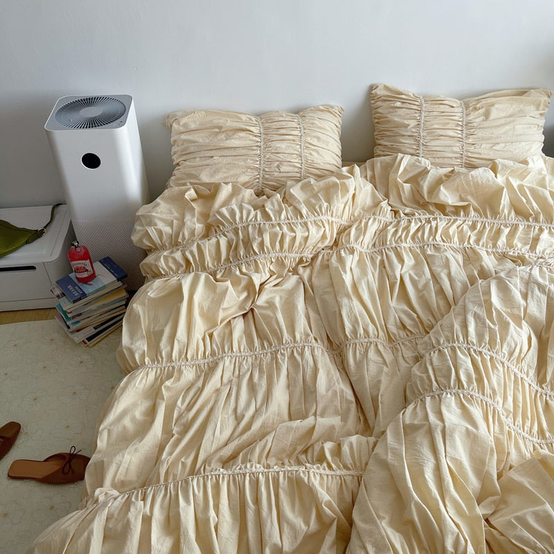 Yeknu Literary Fold Bubble Bedding Set 40S Washed Cotton Soft Double Size Adult Kid Bed Sheet Set Pillowcase Duvet Cover Set 4pcs