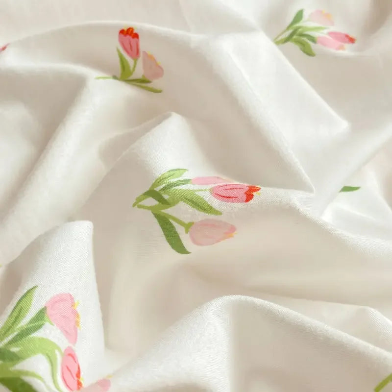 Yeknu Romantic Tulip Pink Bedding Set Bed Flat Sheet Pillowcase Twin Full Queen Bed Linen Kids Girls Floral Duvet Cover No Filling