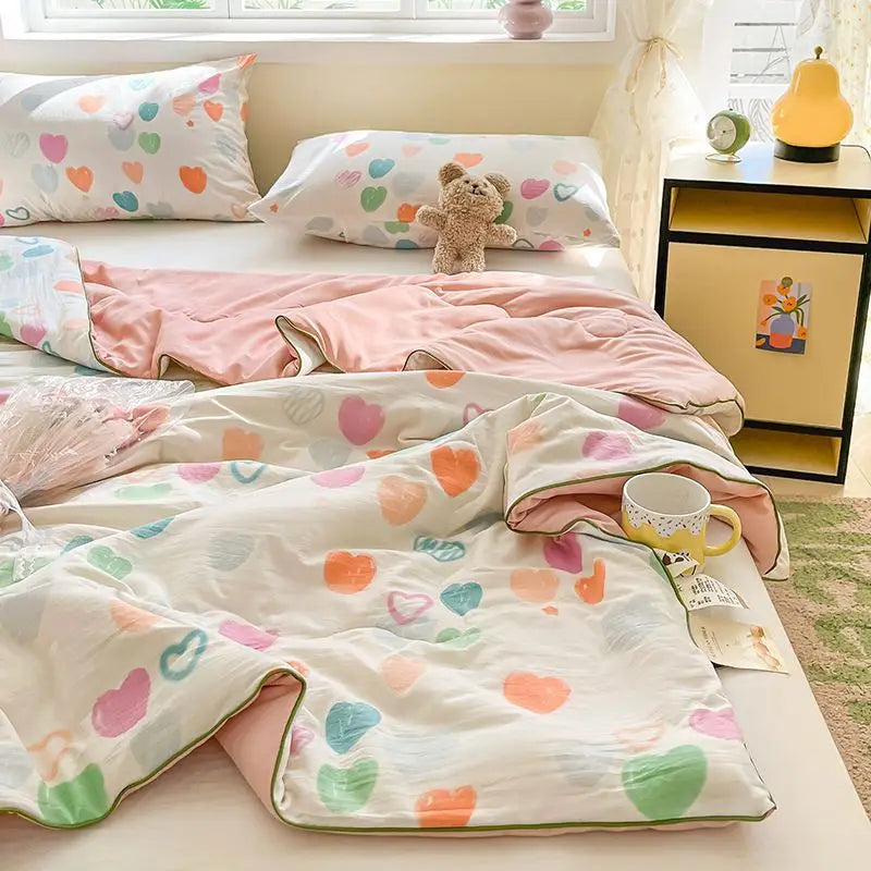 Yeknu Summer Quilt Air Conditioning Quilt Flower Girl Heart Class A Double Layer Yarn Summer Cool Soft Machine Washable