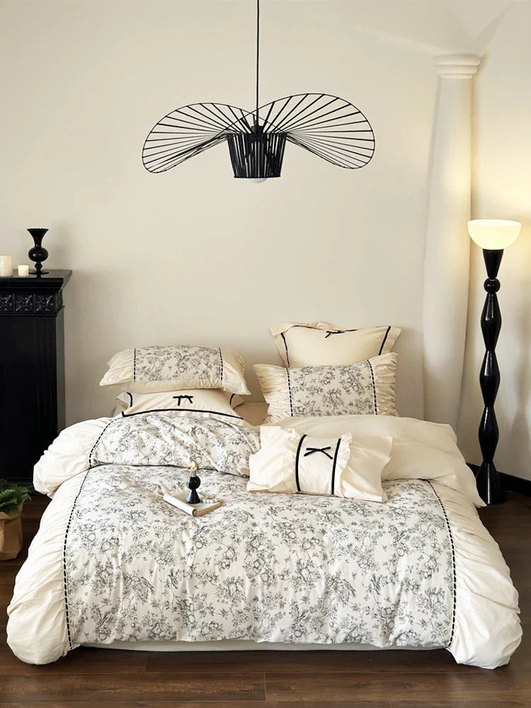 Yeknu Winter 100% Cotton Korean Princess Bedding Set Thickened Retro French Duvet Cover Sets Flower Bed Skirt Skin-friendly Fabrics