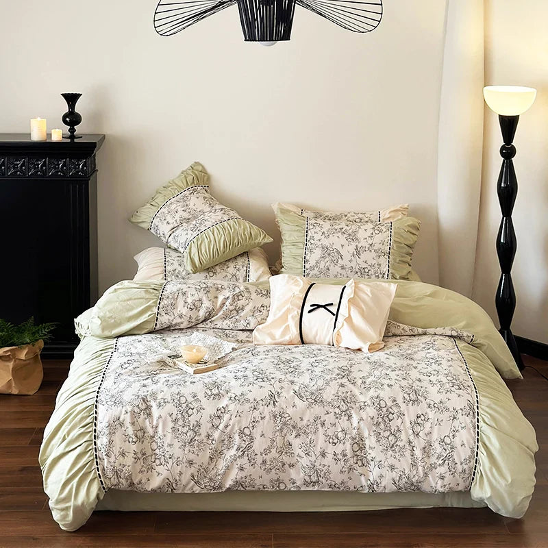 Winter 100% Cotton Korean Princess Bedding Set Thickened Retro French Duvet Cover Sets Flower Bed Skirt Skin-friendly Fabrics